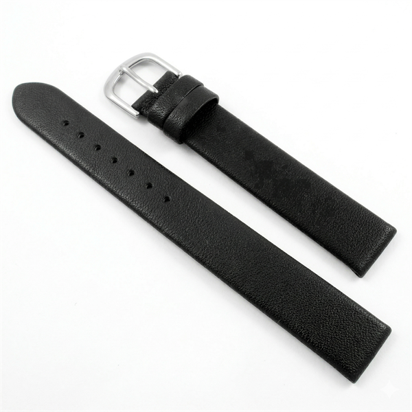 Sort urrem af kalve skind i lige løb uden syninger fra 12-22 mm, 190 mm lang og med 3 typer spænder